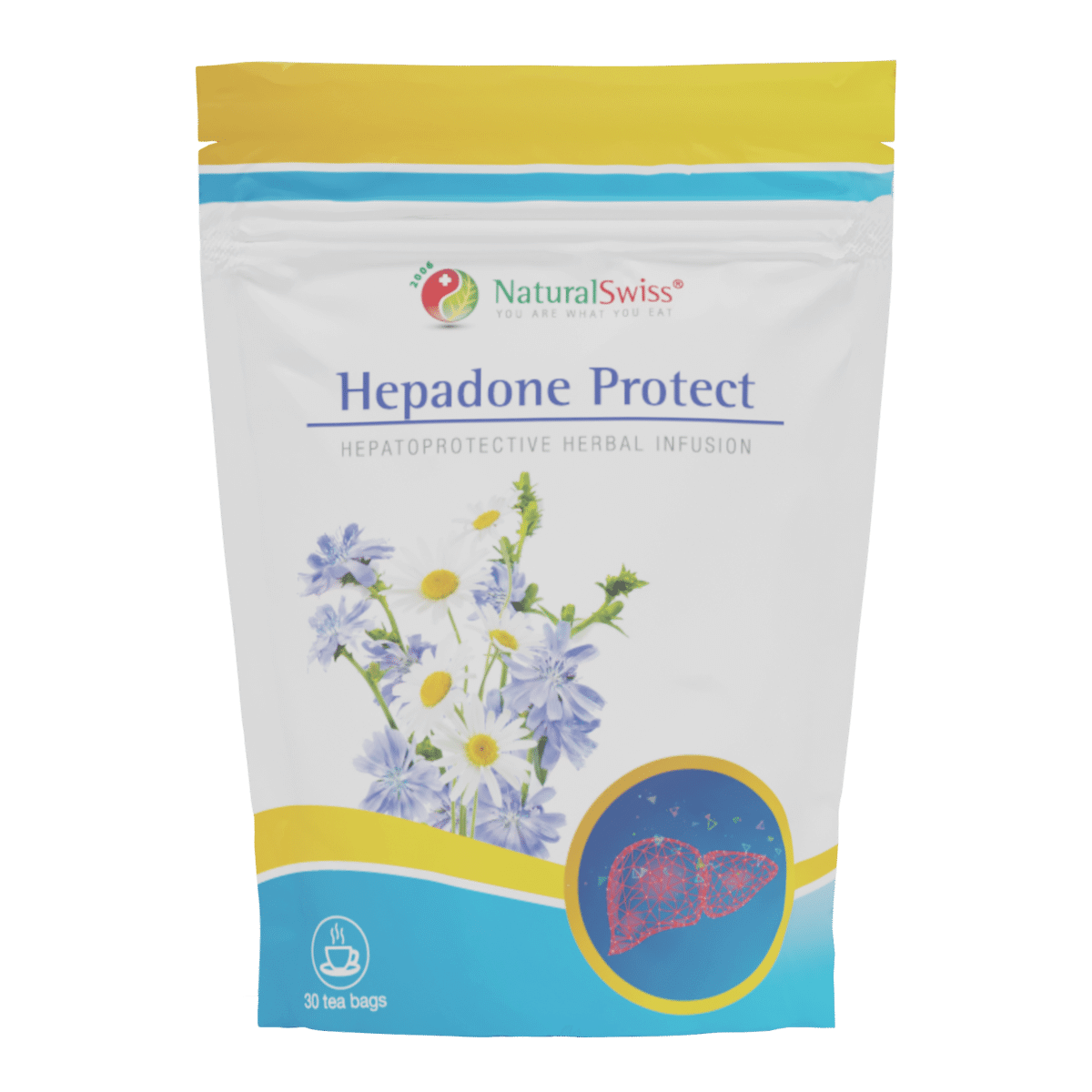 Hepadone Protect je 100% prírodný bylinný čaj, ktorý obsahuje rastliny známe svojimi ochrannými účinkami na pečeň, protizápalovým pôsobením, čistiacim účinkom na krv a upokojujúcimi vlastnosťami. Tento komplexný prípravok podporuje zdravie pečene, napomáha prirodzenej detoxikácii organizmu a prispieva k jej optimálnemu fungovaniu. Vďaka obsahu antioxidantov a protizápalových látok chráni pečeň pred oxidačným stresom a poškodením a zároveň podporuje jej regeneráciu.