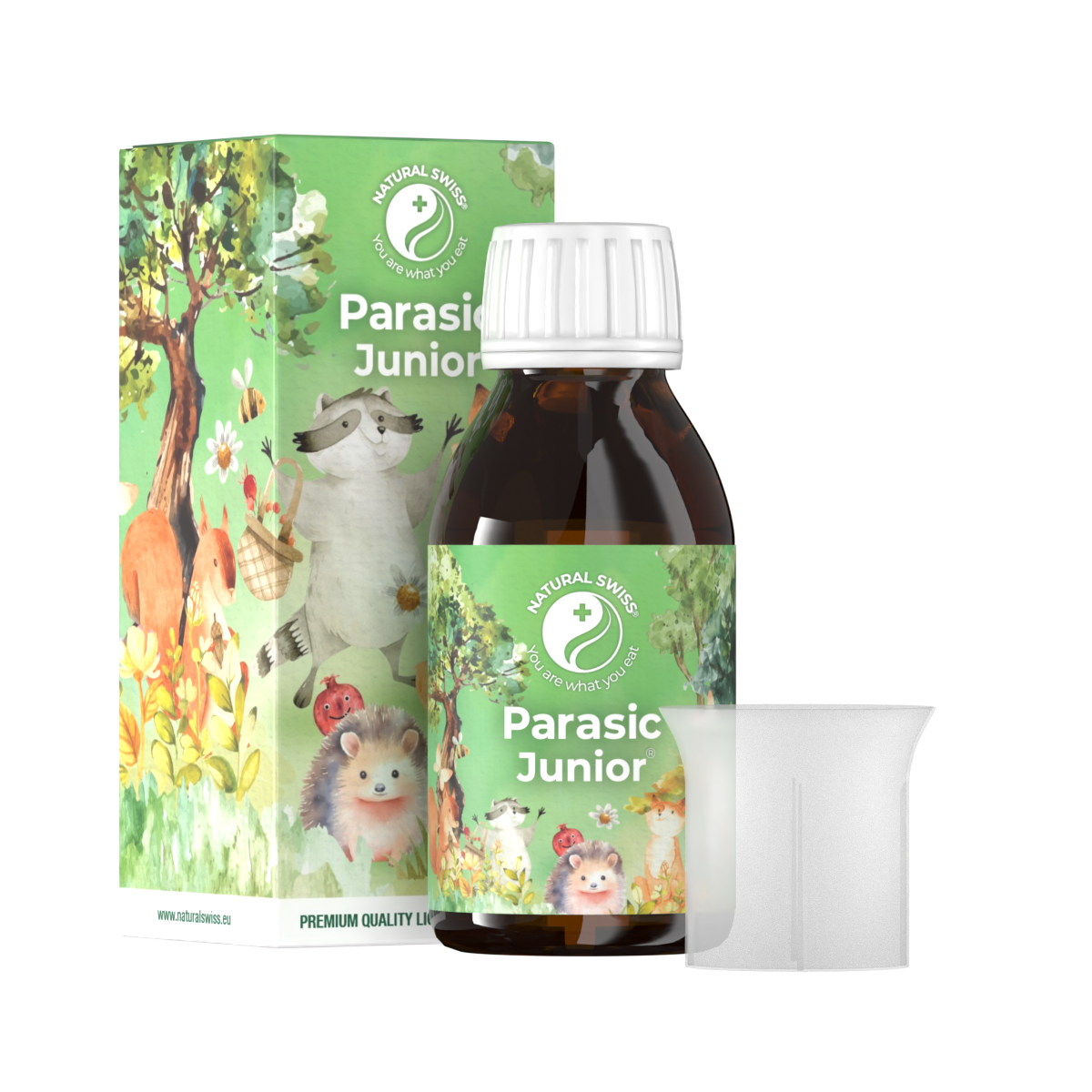 Parasic Junior je tekutý doplnok výživy, určený pre deti od 4 rokov, ktorý obsahuje výlučne prírodné, rastlinné účinné látky. Klinicky overené výťažky z tradičných bylín podporujú trávenie a sú bezpečné aj pre deti. Starostlivo vyberané bylinky, ktoré obsahuje, sa po stáročia používajú na odstránenie črevných parazitov a ich vajíčok. Rastlinné extrakty produktu nezaťažujú zbytočne organizmus a pokojne ho môžu konzumovať aj osoby dodržiavajúce vegetariánsku stravu. Neobsahuje kofeín, sóju, kukuricu, cukor, vajcia, mlieko a alkohol.